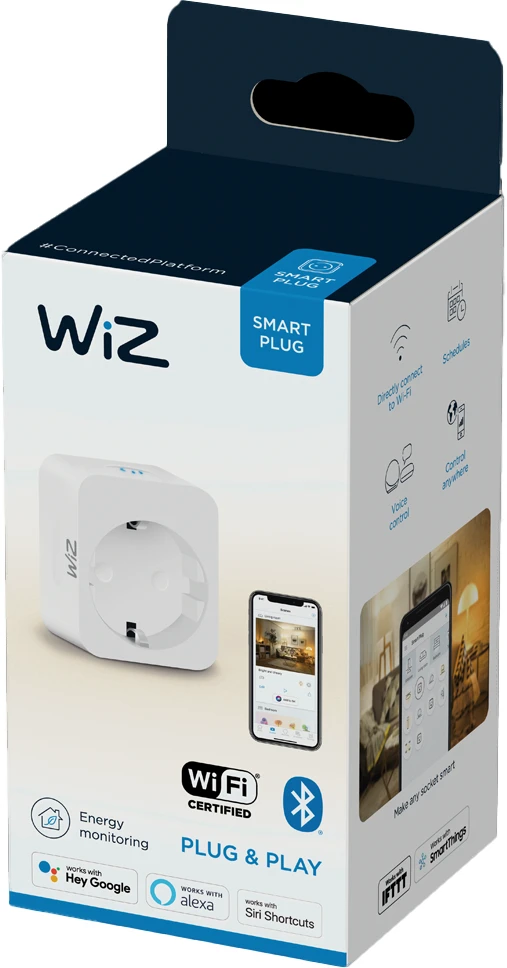 Dieser Smart Plug verfügt über einen eingebauten Stromverbrauchszähler. Er misst den Energieverbrauch des in den Smart Plug eingesteckten Gerätes. Anhand der visuellen Zusammenfassung in der WiZ App wird deutlich, wie viel Energie das Gerät verbraucht.